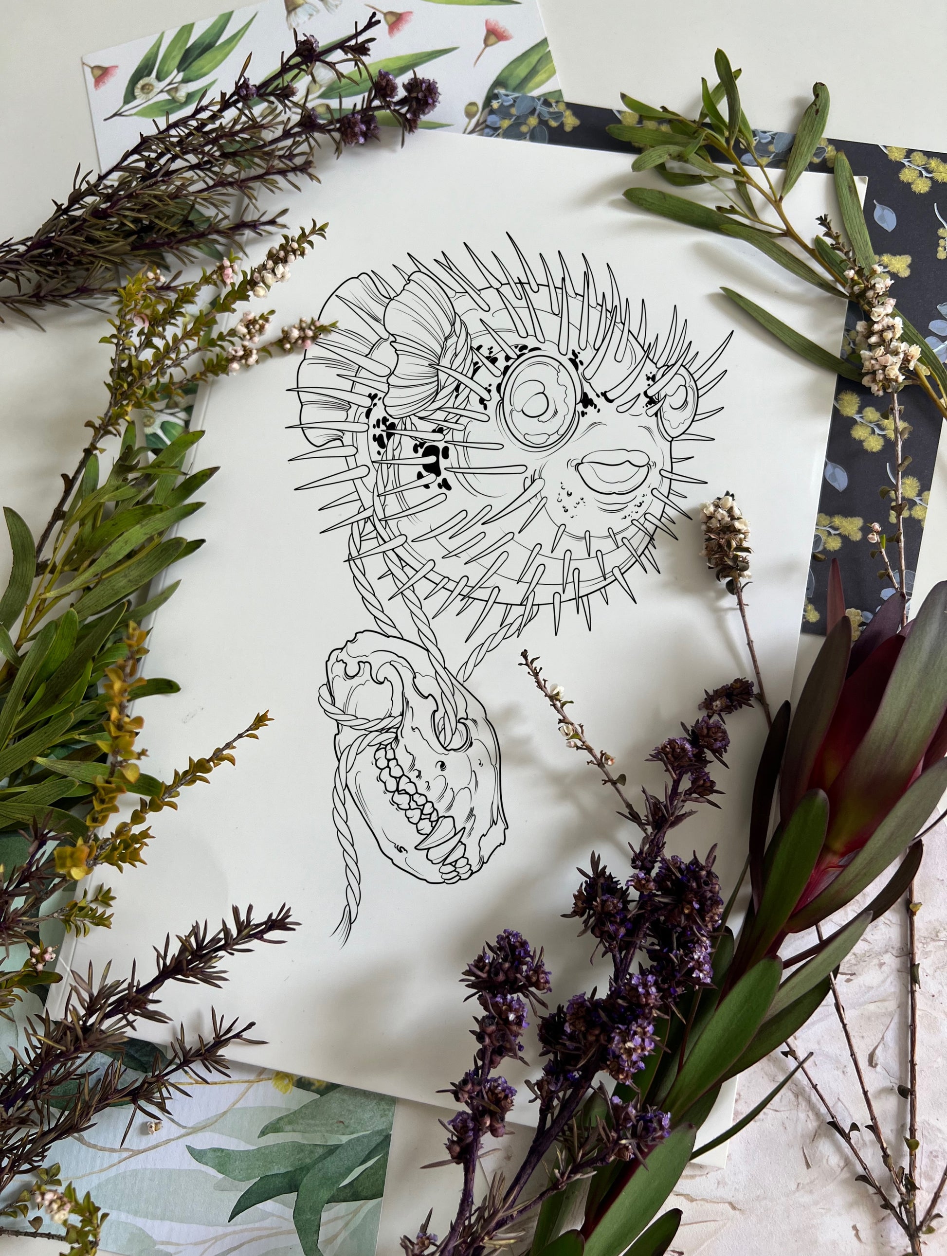 Puffer fish notes: This design is best suited to a forearm, calf or bicep but it can fit most placements. It could be tattooed as small as 14cm tall (in this case a half day appointment would be appropriate). For anything over 18cm tall we will require a full day booking.